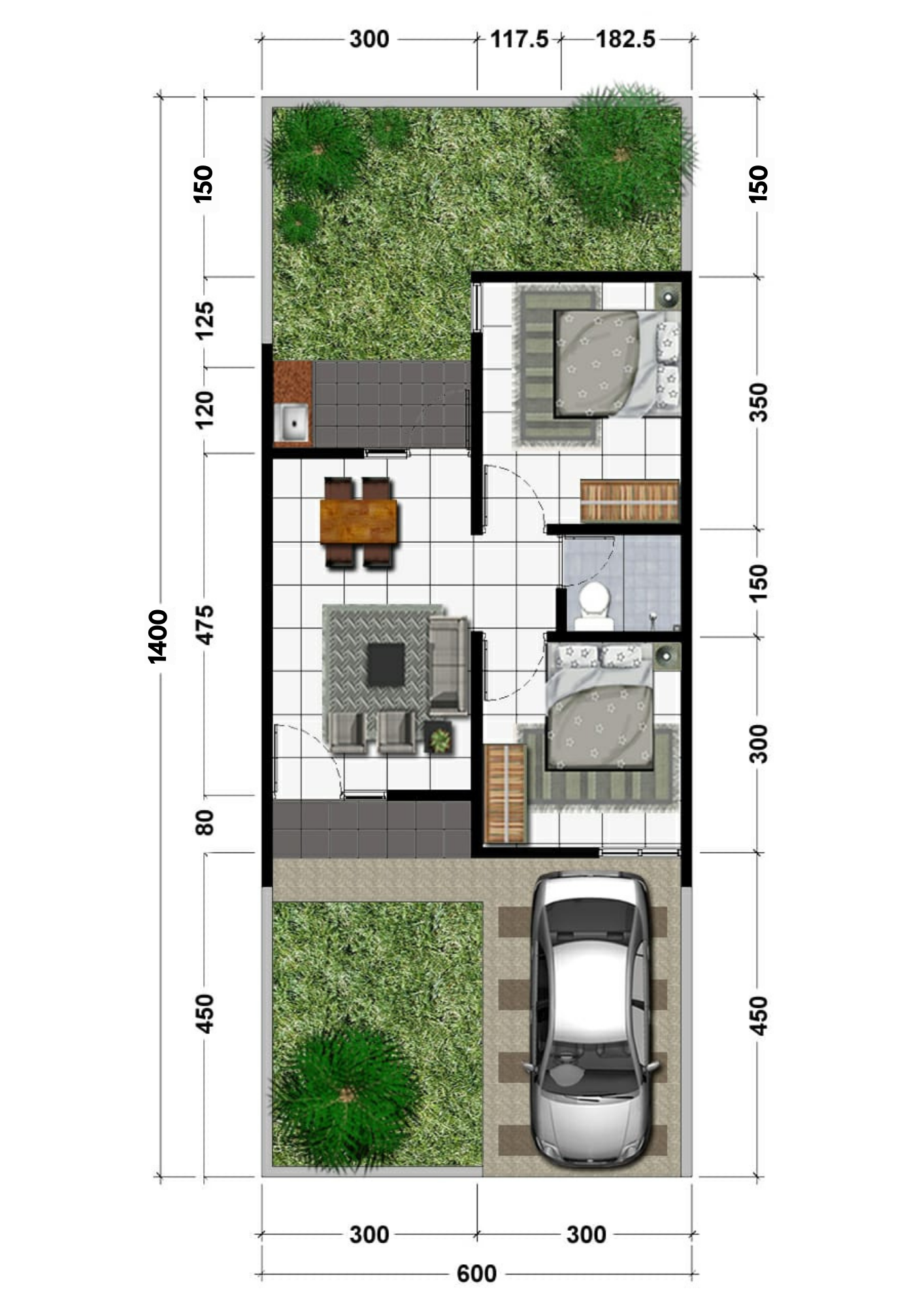- Luas Tanah : 84 m2 (6 x 14)