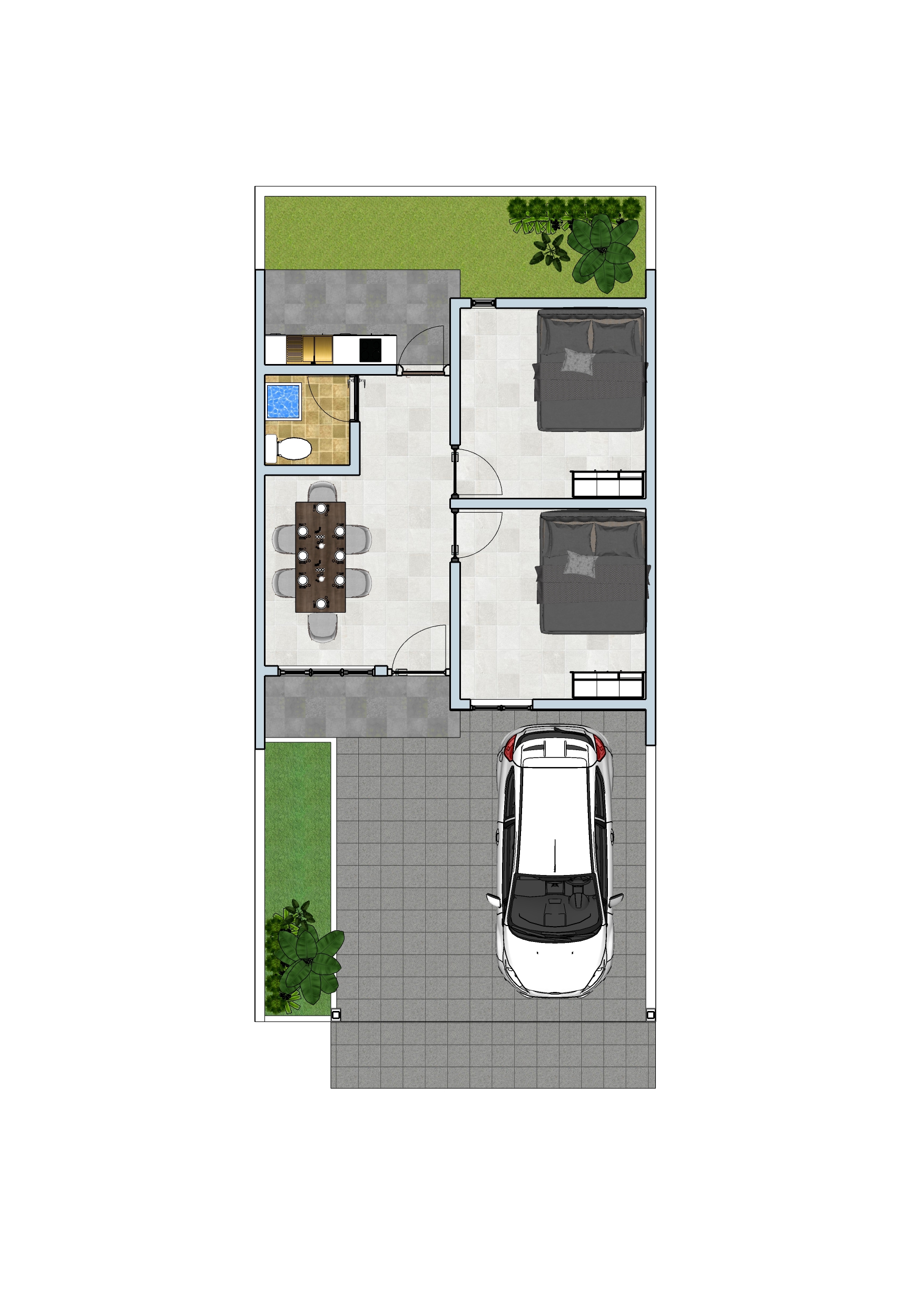 - Carport Area : (1 Mobil + 2 Sepeda Motor)