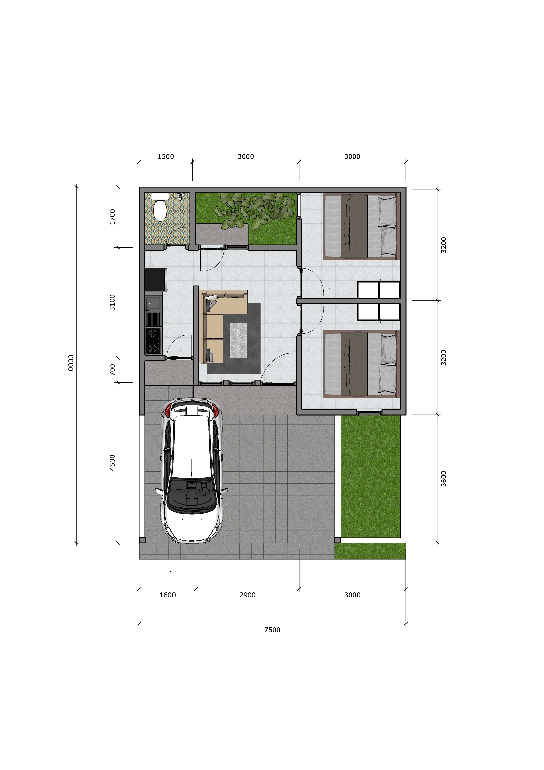 - Luas Tanah : 75 m2 (7,5 x 10)